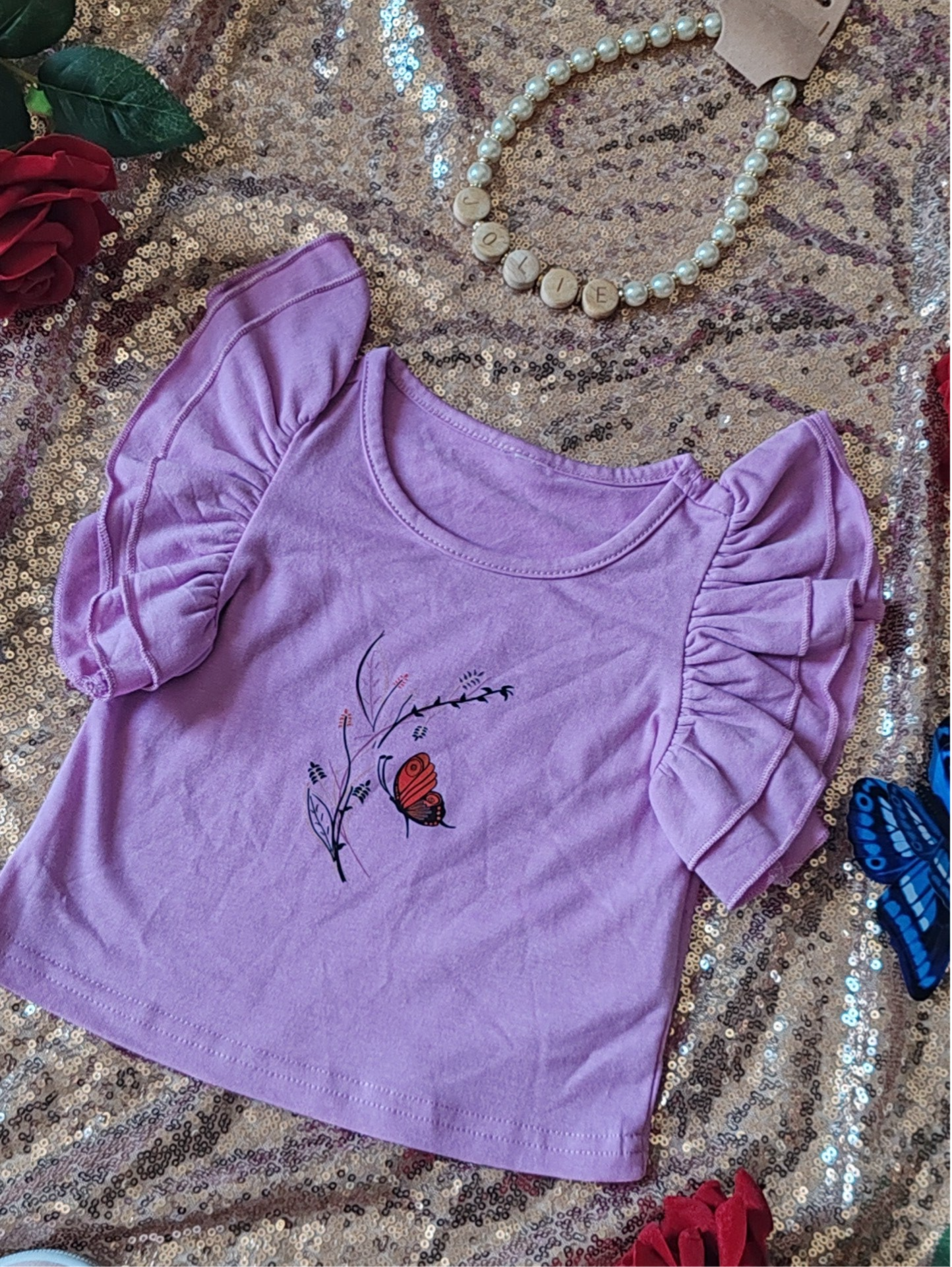Tee-shirt à volant violet