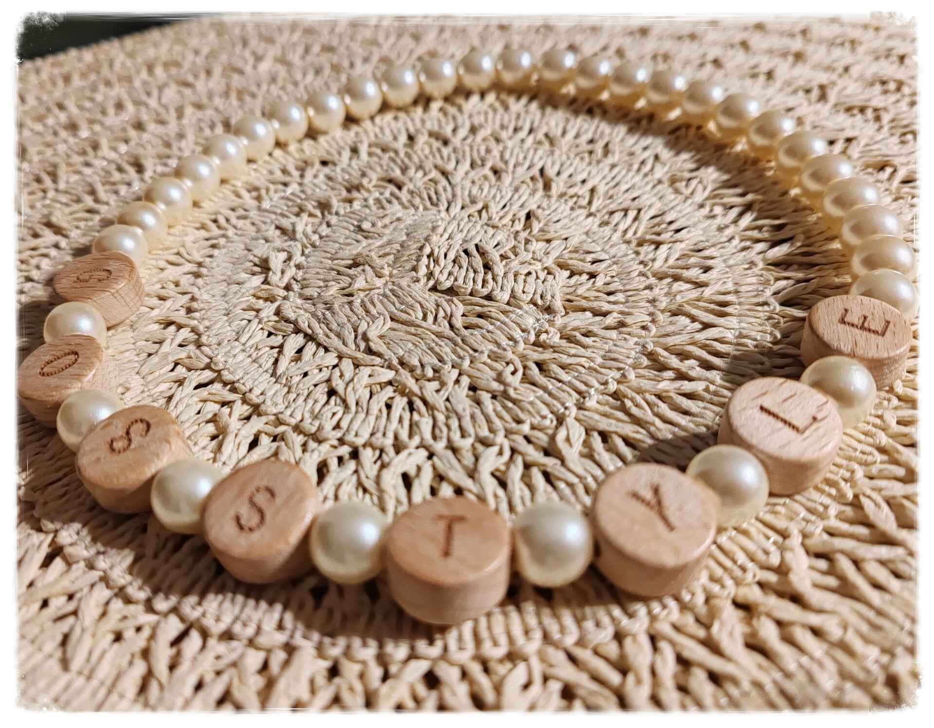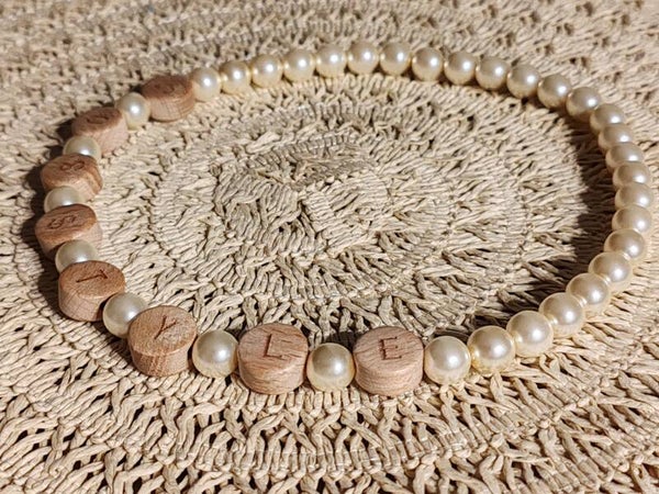 Perle en verre écru, perles en bois, élastique