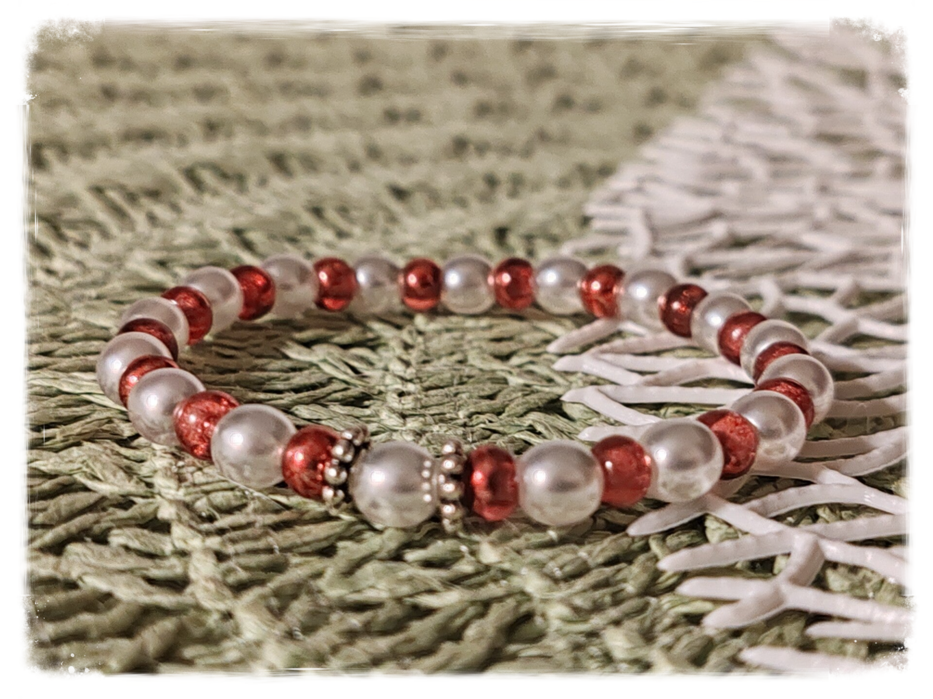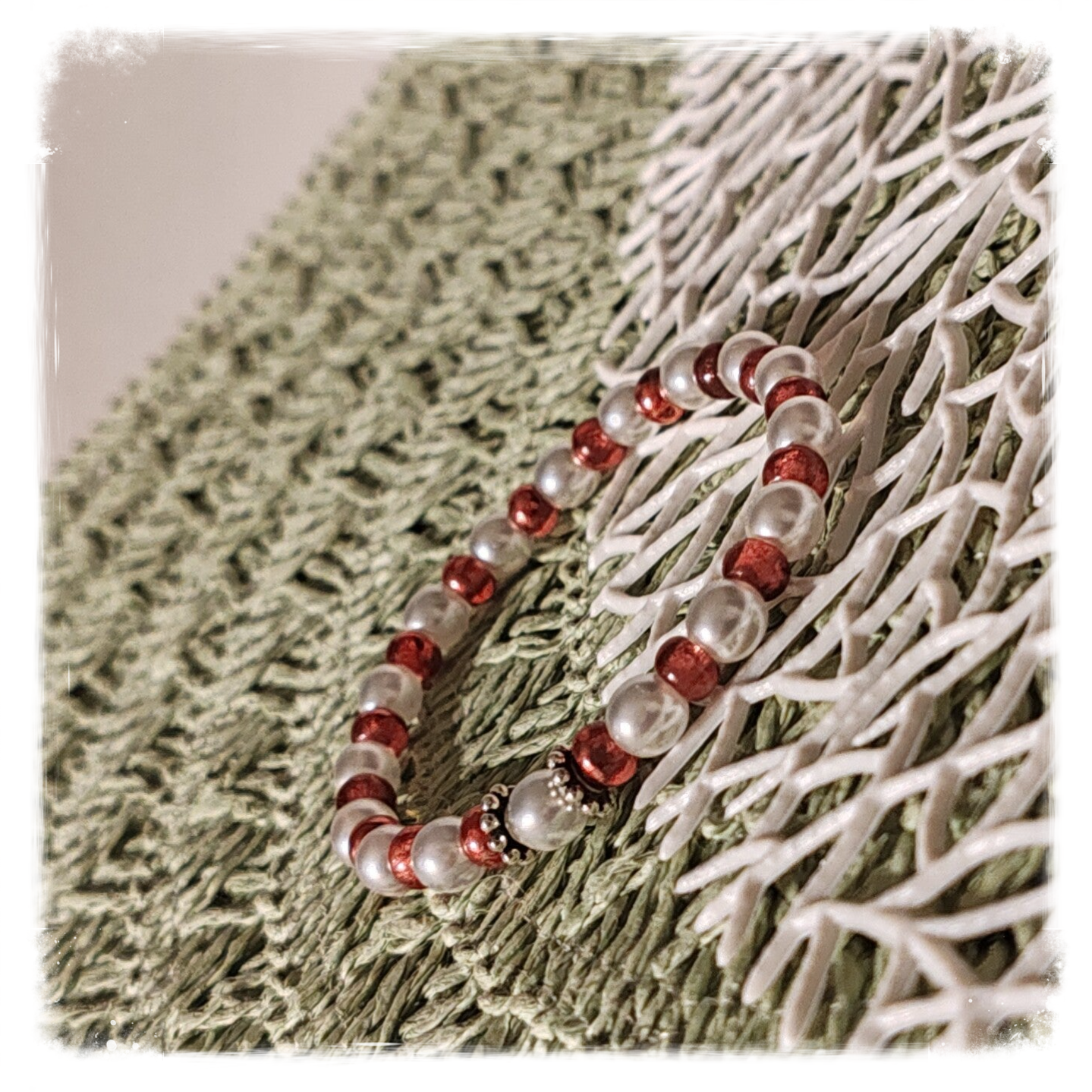 Perle en verre renaissance blanche, rocaille marron transparent , intercalaire, élastique