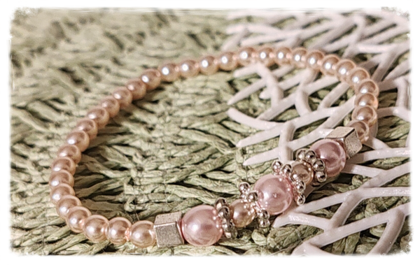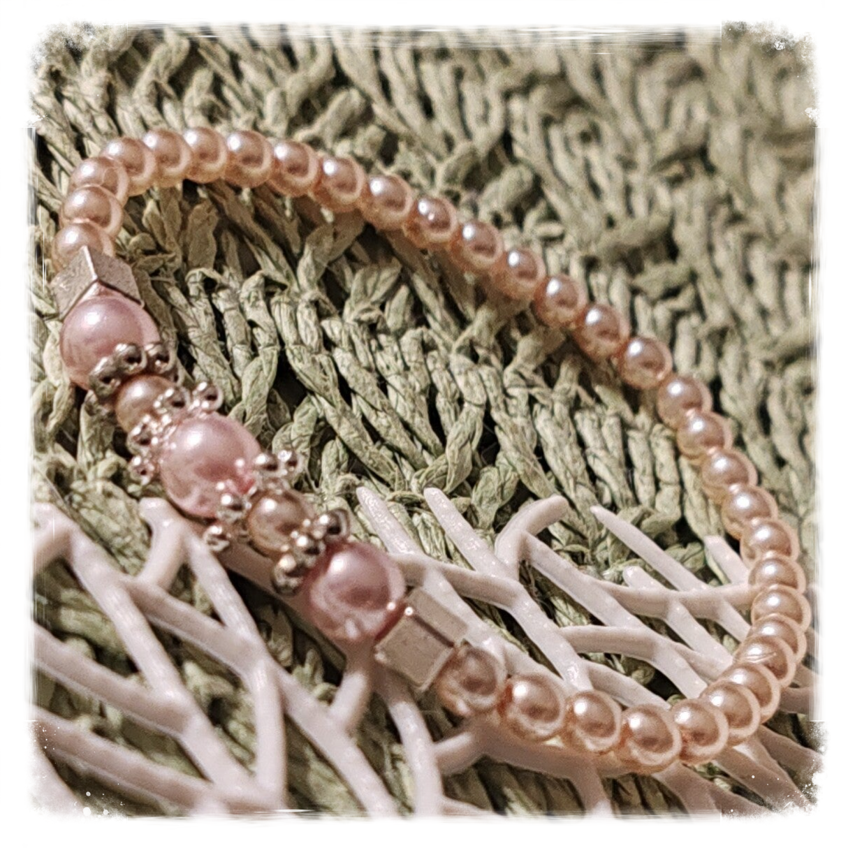 Perle en verre renaissance rose et pêche, intercalaire, élastique