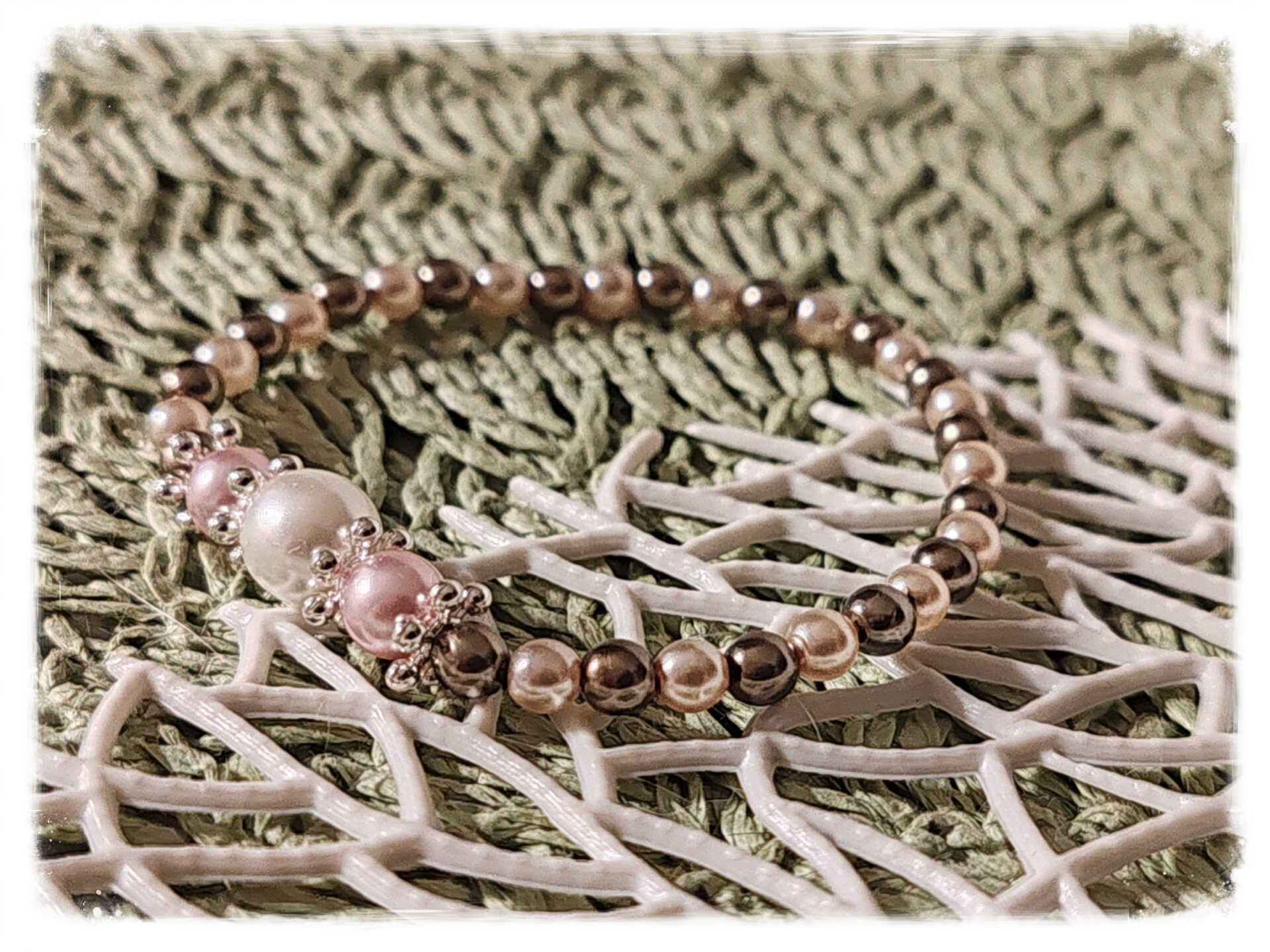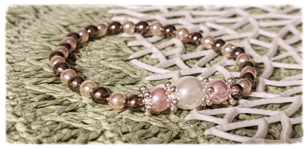 Perle en verre renaissance blanche, rose, gris foncé, intercalaire, élastique