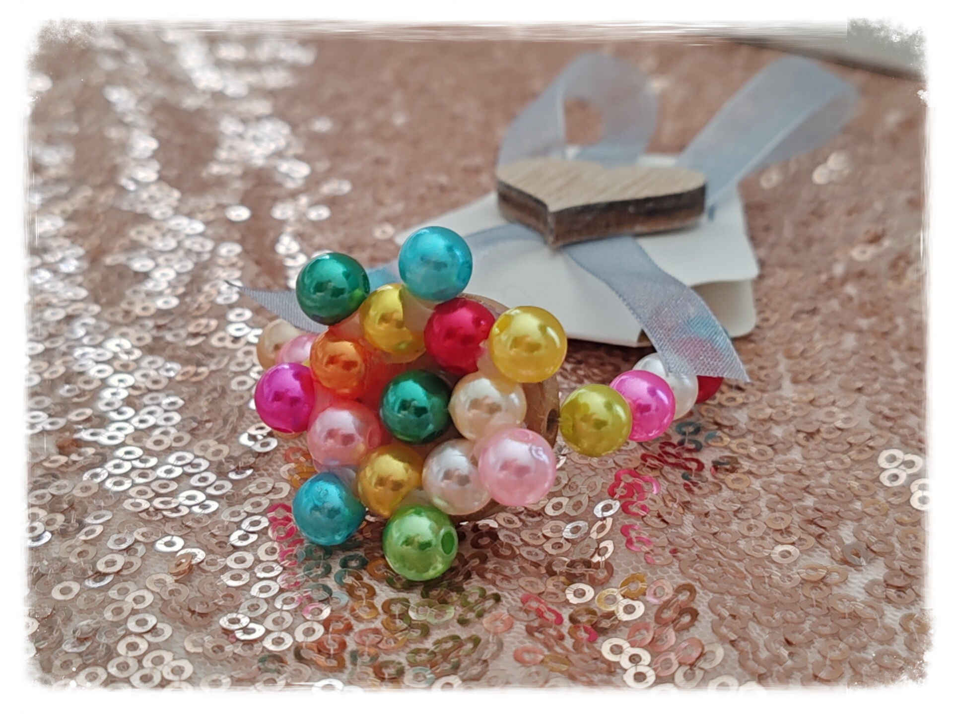 Perle en plastique, multicolore, bois, élastique.