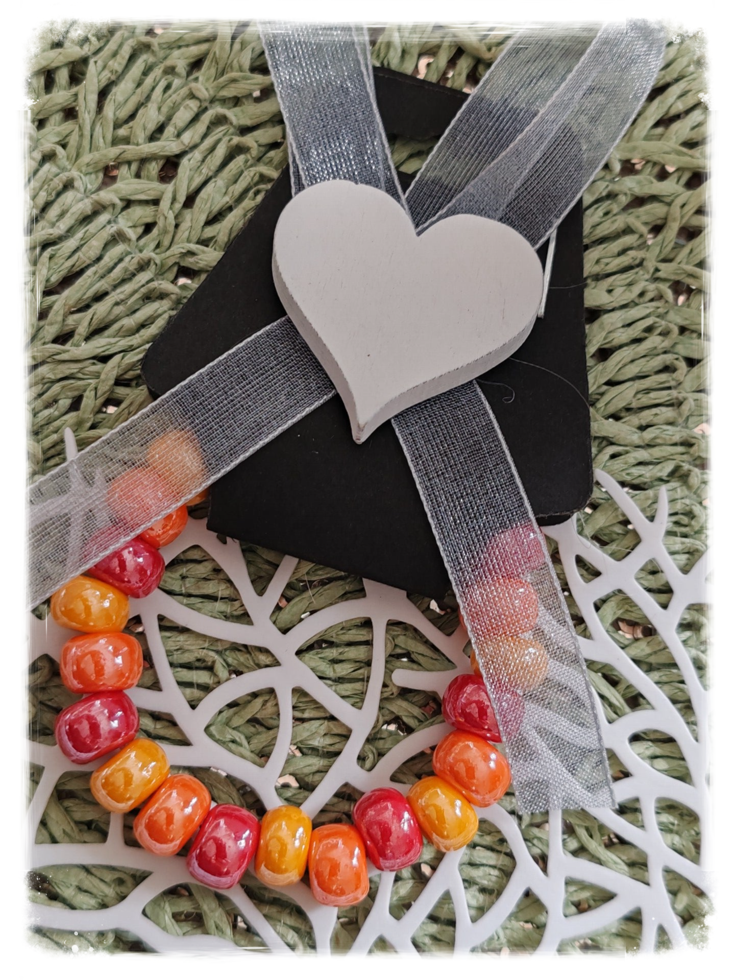 Perle en verre opaque rouge/jaune/orange, élastique.