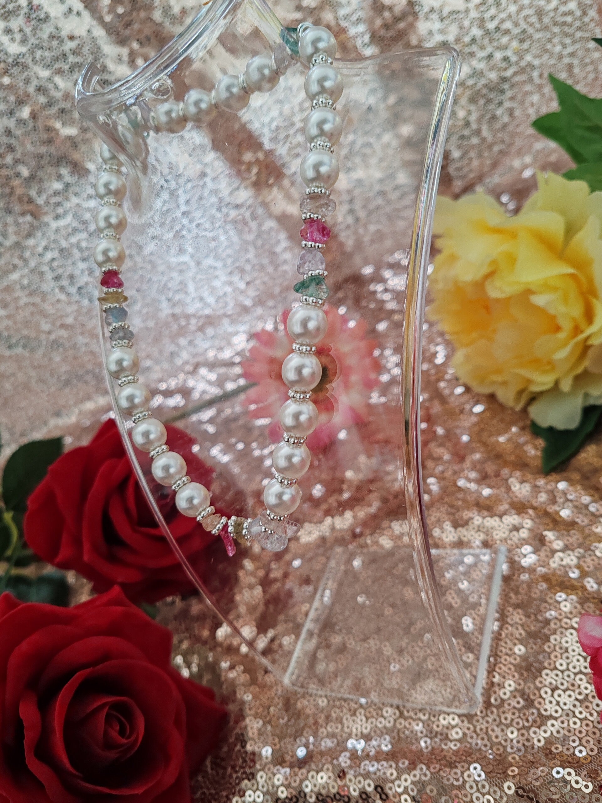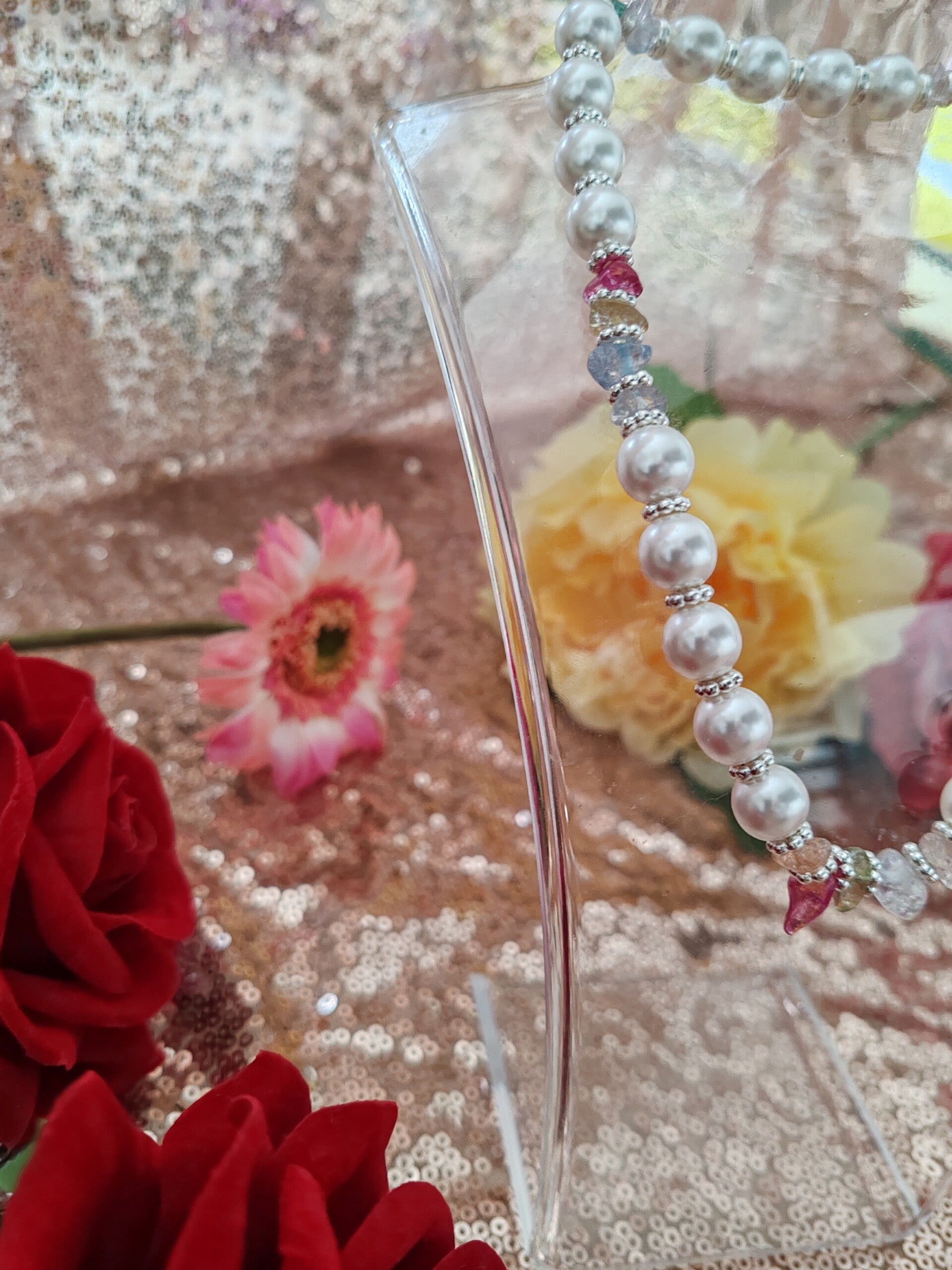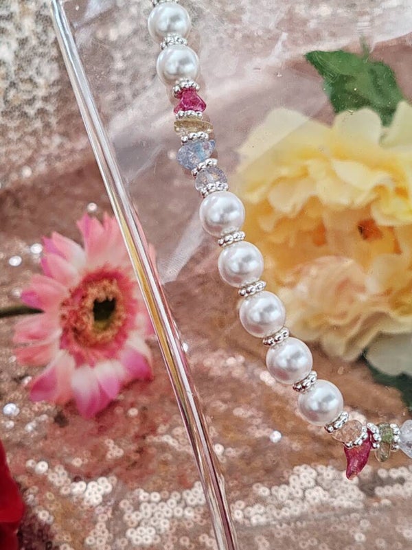 Perle en verre renaissance blanche,pierre transparente rose/bleu/violet/verte/blanche/jaune ,élastique.