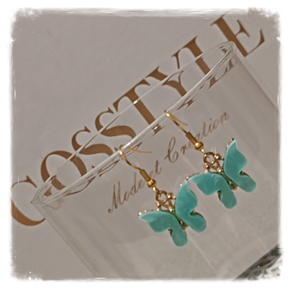Boucle d'oreille en acier inoxydable, papillon couleur turquoise en alliage, acier.