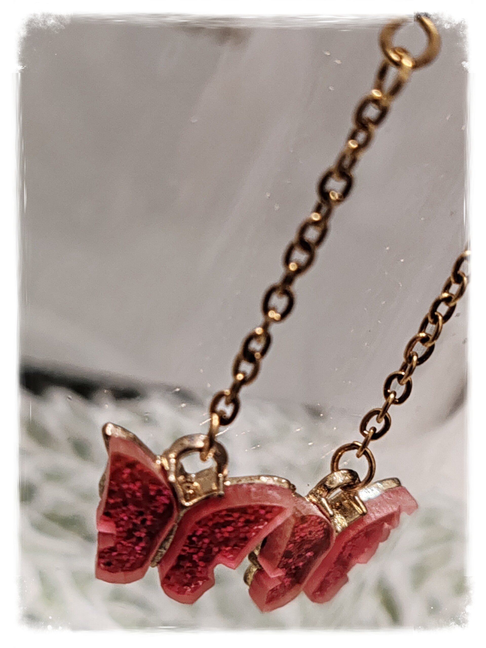 Fils d'oreilles en acier inoxydable, papillon rouge pailleté.
