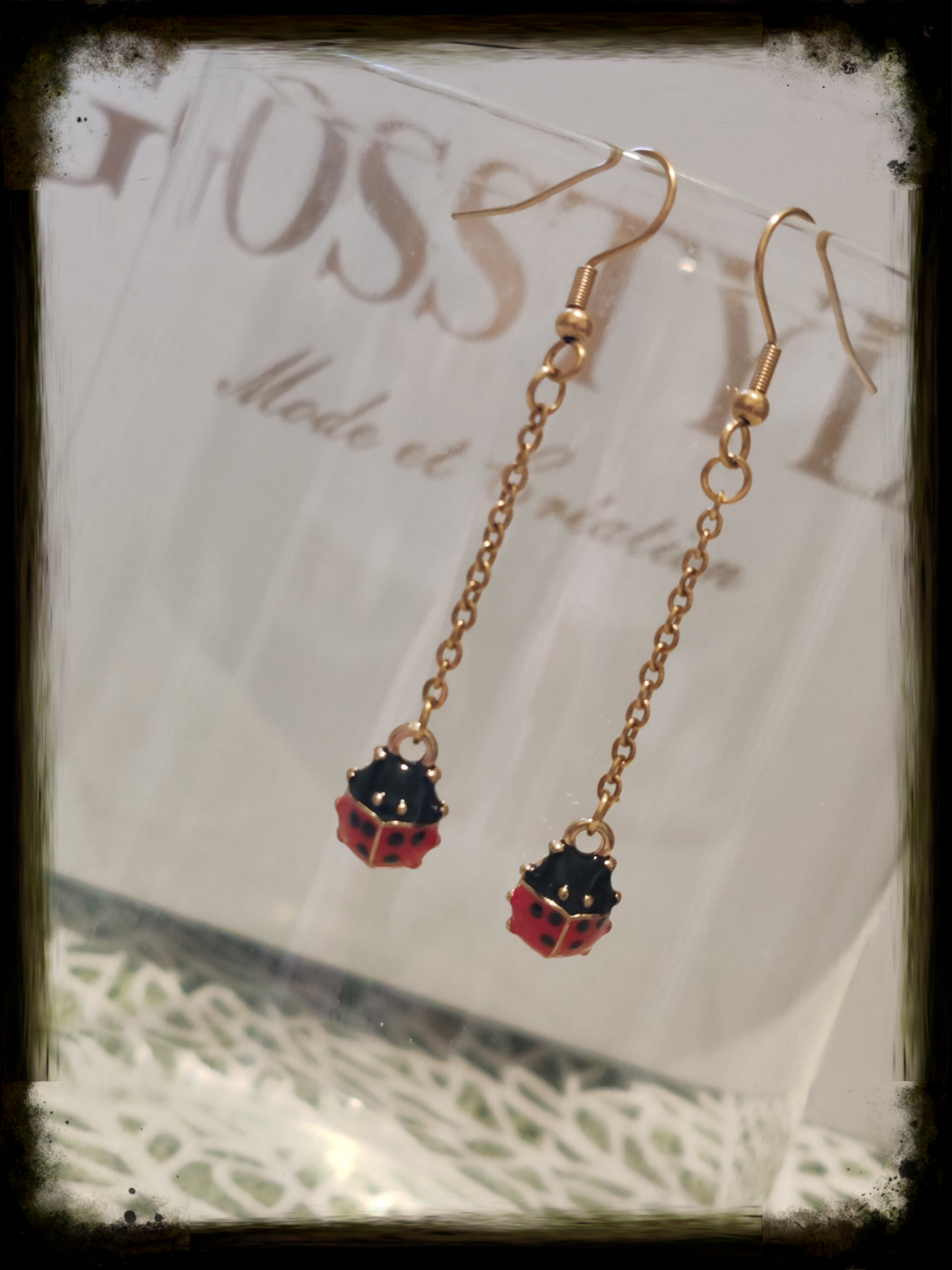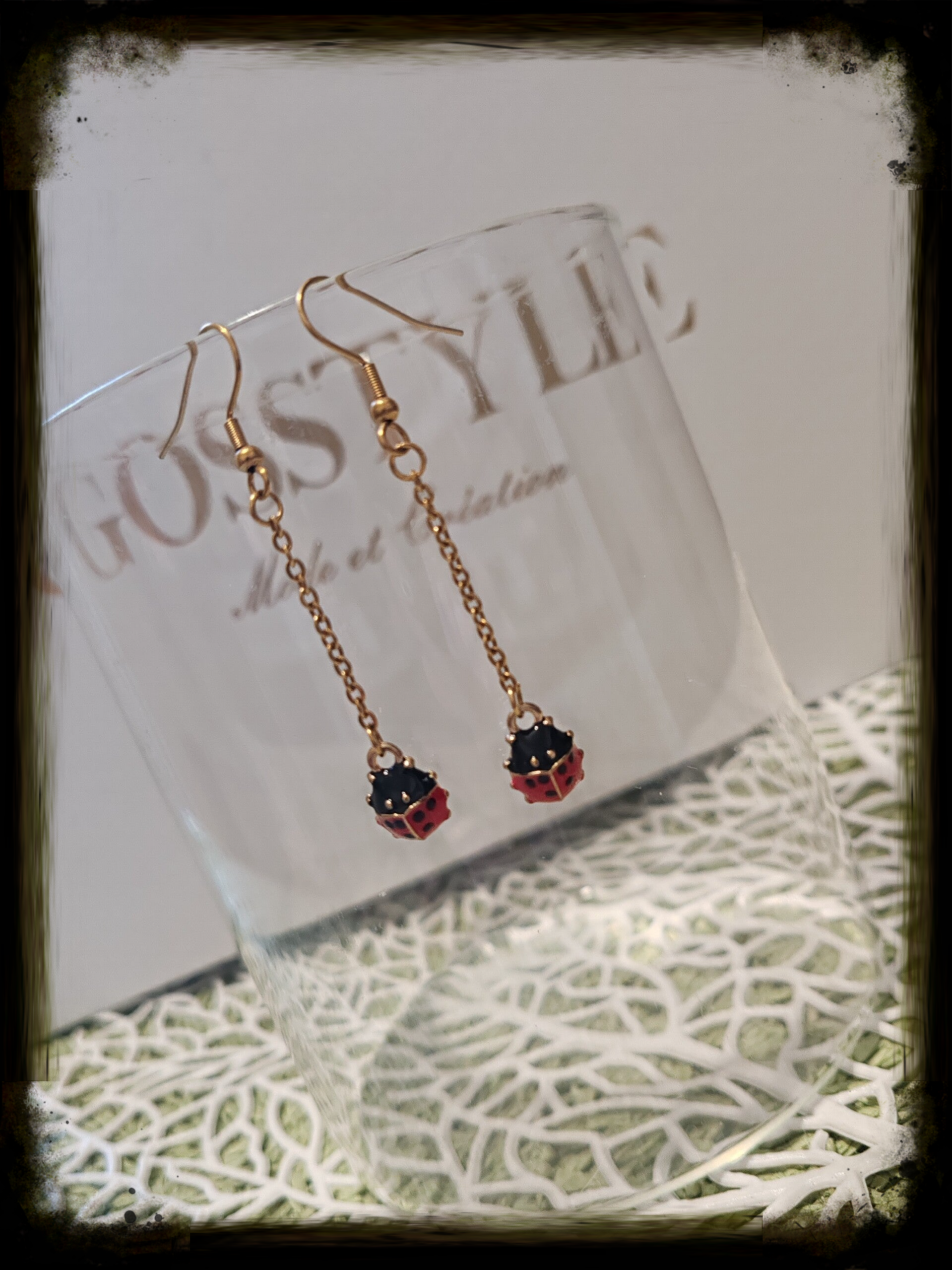 Fils d'oreilles en acier inoxydable, coccinelle 3D métallique.