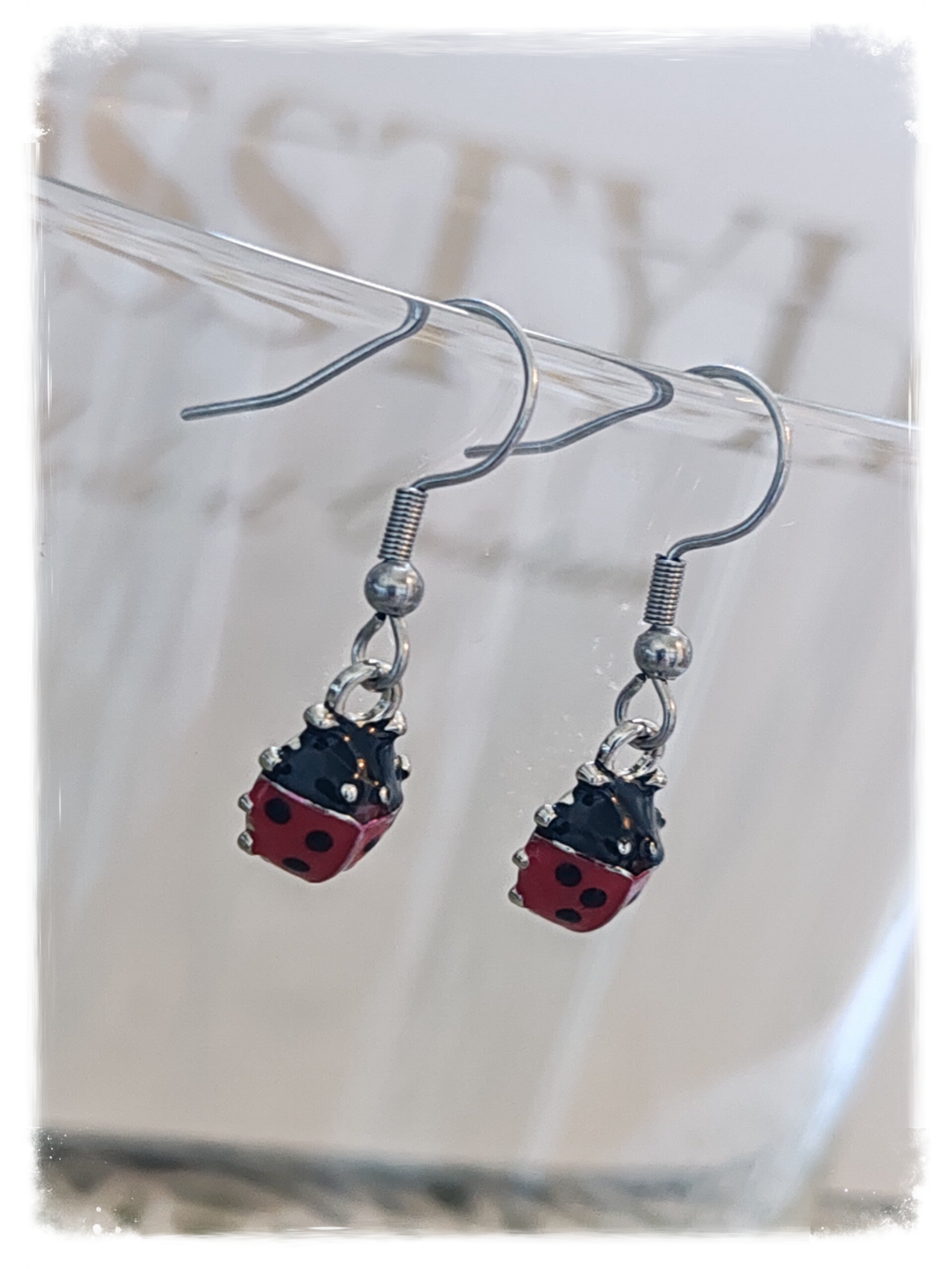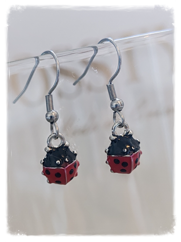 Boucle d'oreille en acier inoxydable, coccinelle 3D métallique.