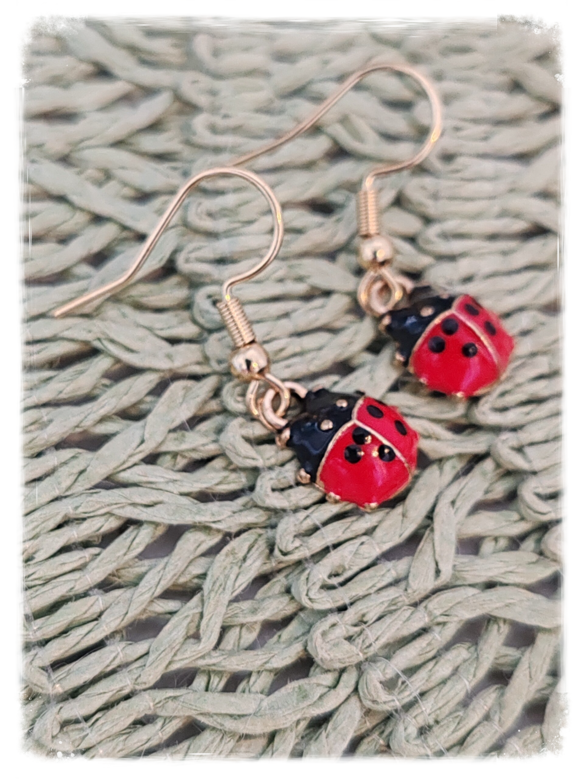 Boucle d'oreille en acier inoxydable, coccinelle 3D métallique