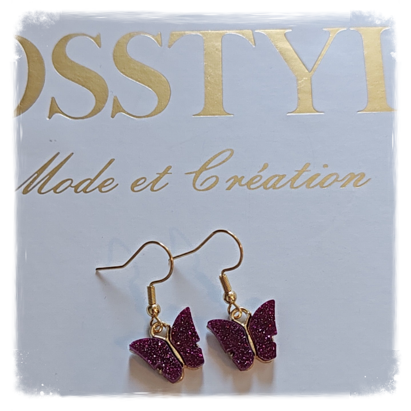 BOUCLE D'OREILLE PAPILLON PAILLETÉ