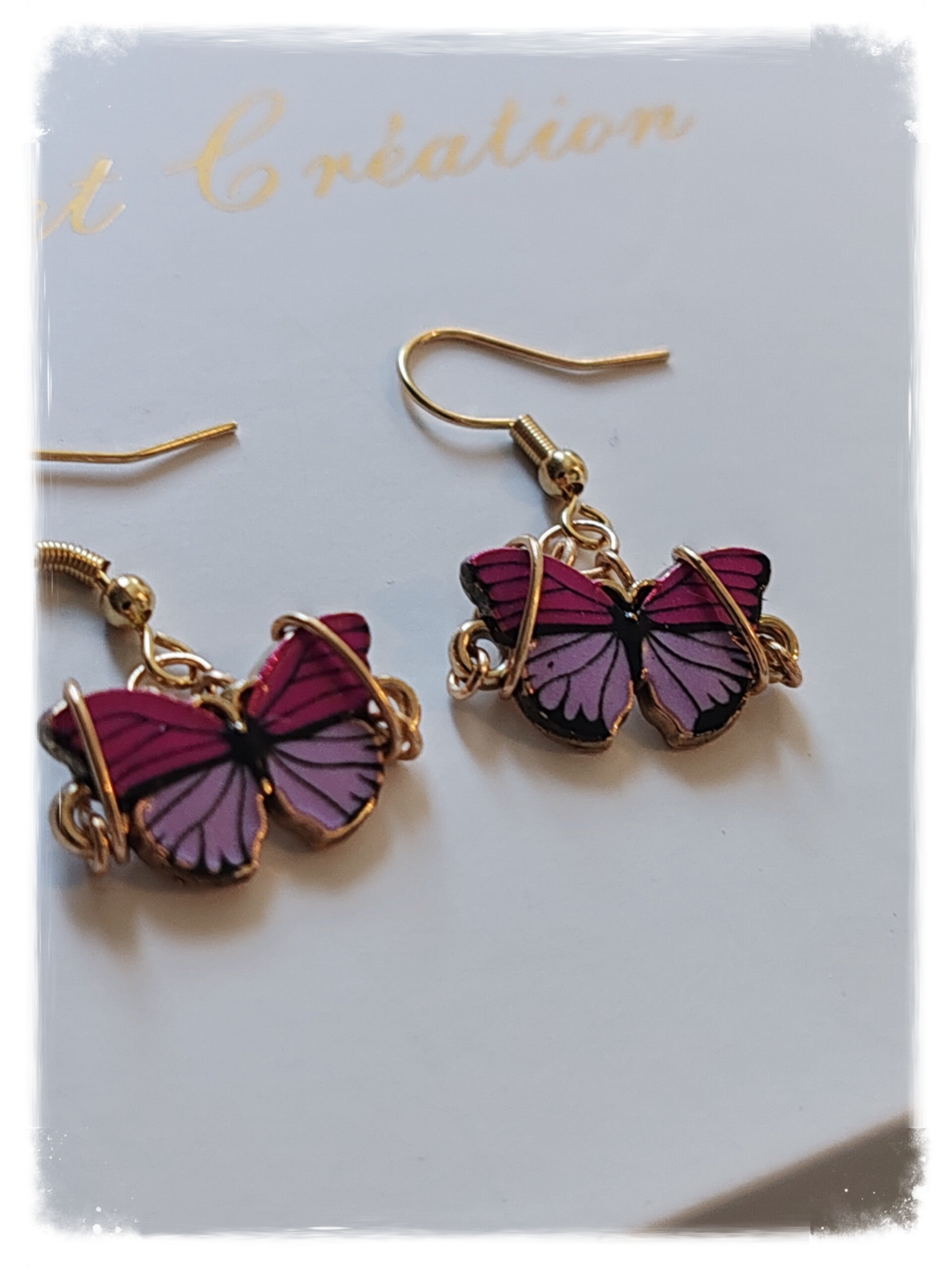 boucle d'oreille en acier inoxydable, papillon rose /violet
