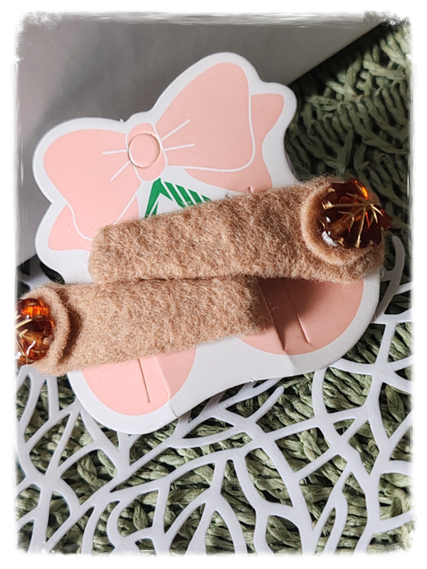 Barrettes longueur 5,5cm sur 1,5cm, petite perle marron en feuille