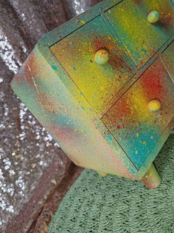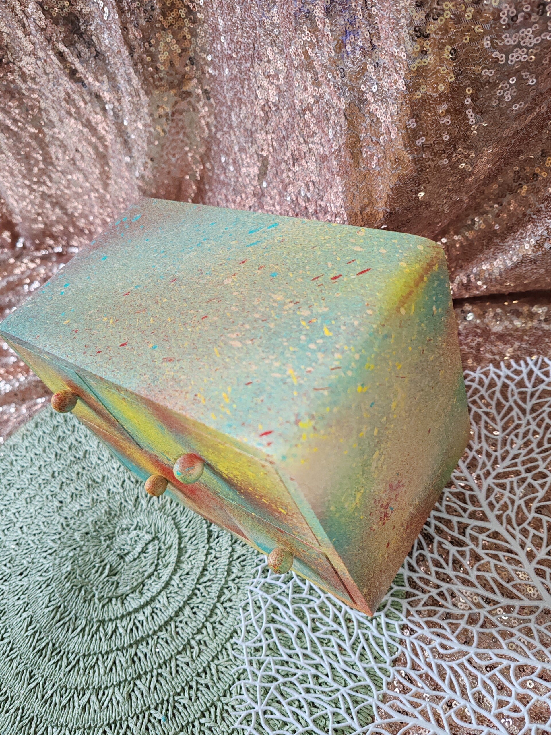 Boîte à bijoux en bois, longueur 20cm,largeur 11,5,hauteur 17cm, peinture pro acrylique spray.Thème Galaxy